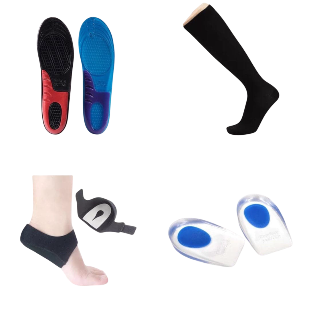 Du gör bäst i att välja skor som ger en tillräcklig dämpning i hälen och samtidigt stödjer ditt fotvalv på ett bra sätt. Detta för att minimera risken för överbelastning av hälsenan. Undvik att bära utslitna skor och använd gärna skoinlägg om dina fotvalv behöver extra stöttning.